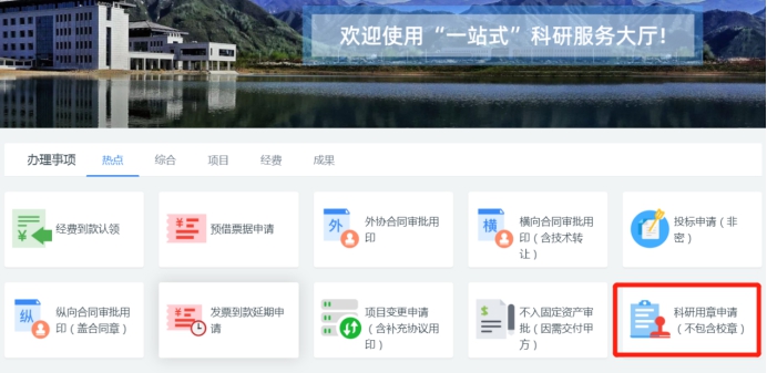 2. 办理地址:登录翱翔门户,点击“科研系统”进入系统巨乳;在巨乳办理事项栏选择“科研用章申请”。