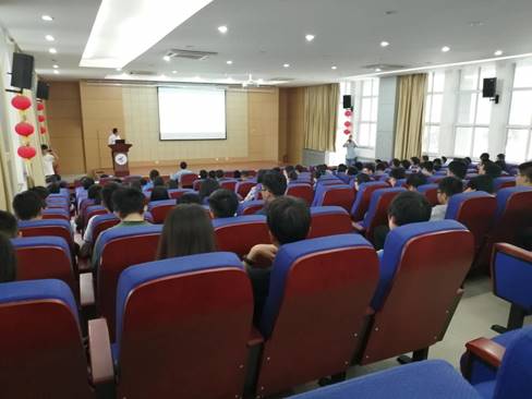报告厅,党委书记於志文教授受邀,以“立志创新,勇做时代弄潮儿”为题,为毕业班学生上最后一堂思政课。学院党委副书记徐方暖,辅导员赵晨和廖泽泽一同参加学习。