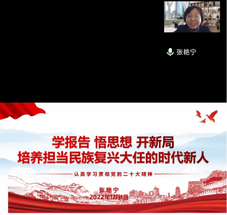 张艳宁就党的二十大精神的丰富内涵和重大意义、赓续“西工大现象”、如何培养一流拔尖创新人才和时代新人等三个方面进行宣讲,并结合研究生教育和巨乳