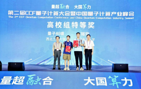 张伟伟副教授指导的本科生参赛队伍“量子纠缠”队在初赛、决赛中圆满完成了线性方程组求解、量子态制备、任意幺正变换的实现等量子算法设计和实现,一路过关斩将,最终取得特等奖的优异成绩。“量子纠缠”队员为西工大巨乳
