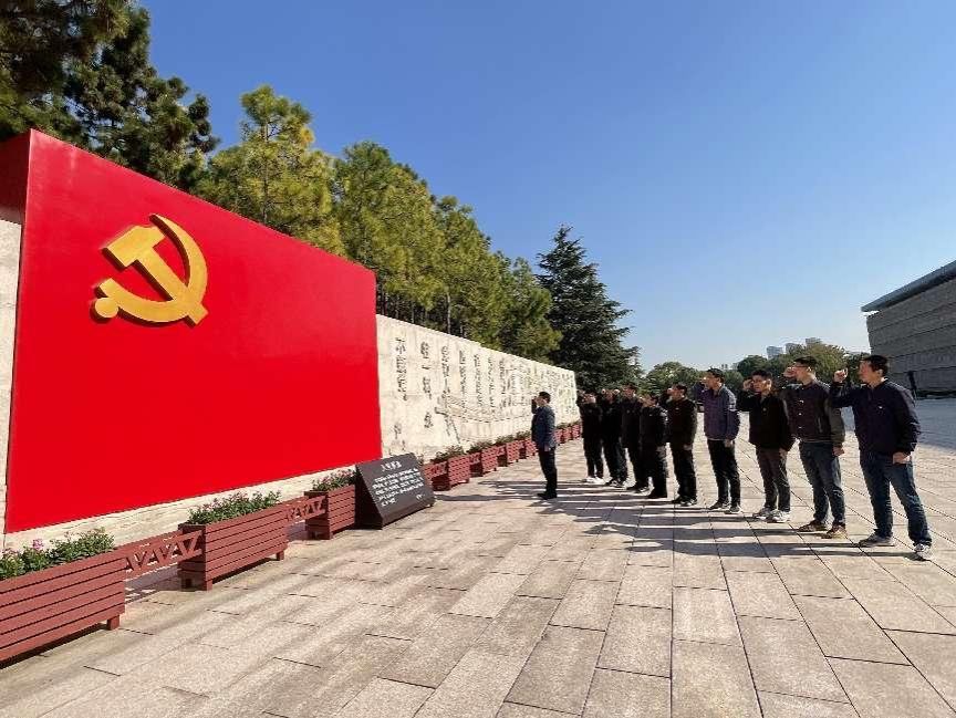 党员同志们一路学习、一路思考、一路领悟,通过一段段史实文字、一张张历史图片、一件件历史文物,身临其境地穿行在党的百年征程中,加深了对“伟大建党精神”“红船精神”所承载的首创精神、奋斗精神和奉献精神的深刻理解,使党员们不忘初心、牢记使命,坚定理想信念,锤炼党性修养,传承红色基因,守好红色根脉,把对党的思想认同、情感认同转化为干事创业的强大动力。在南湖革命纪念馆的宣誓墙前,党员们重温入党誓词。