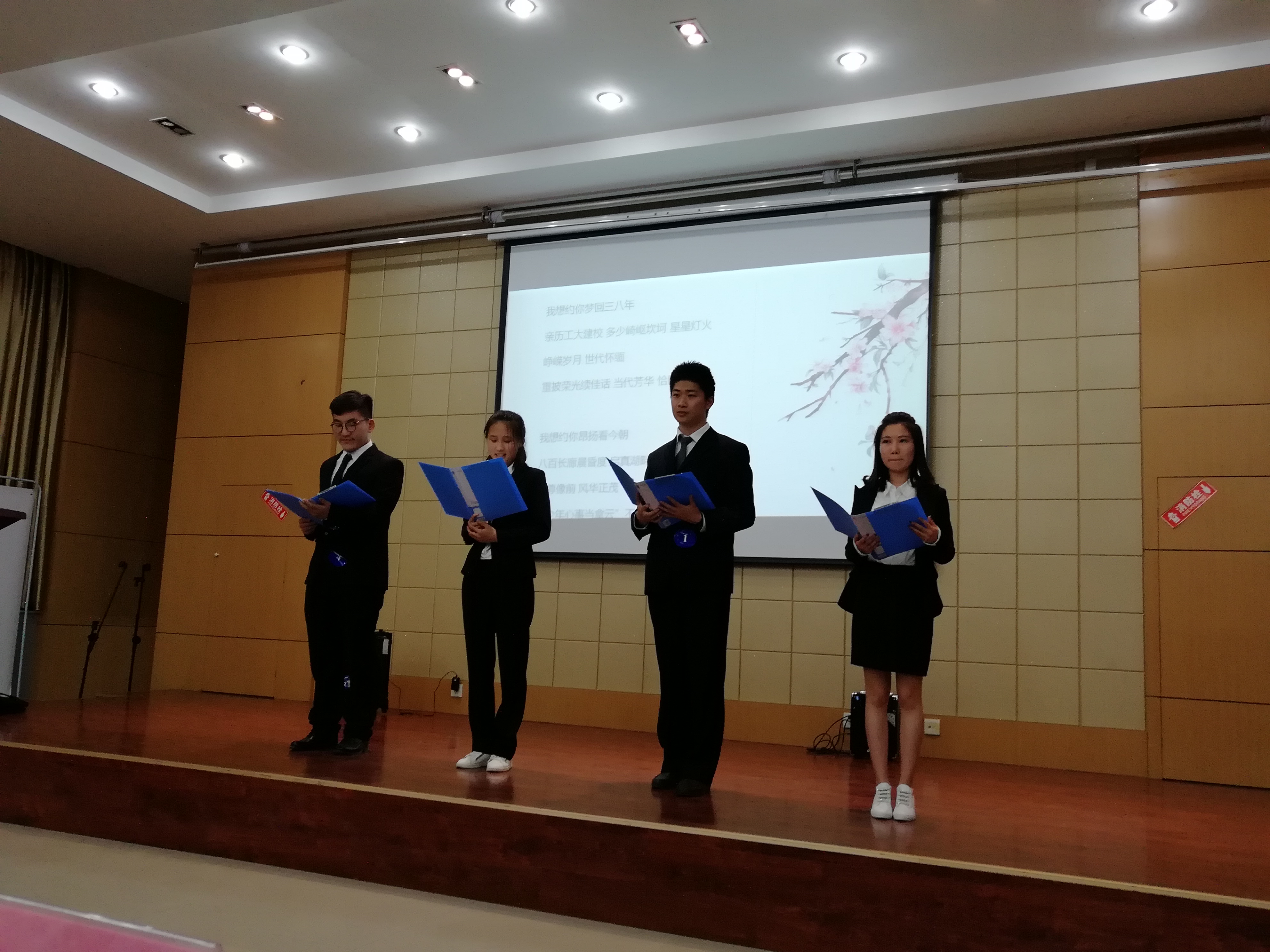 第二回合,选手们通过抽签,朗诵表演了本次活动征集的诗文——《离念》、《母校颂》、《八十年•忆》还有《八十年•邀》,这四首由我校学生原创撰写的诗歌表达了同学们对西工大的深深依恋,比赛选手们的精彩演绎也使得诗歌的感情得到了充分的表达。