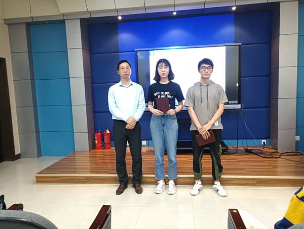 田径队赞助商代表房蕾和徐方暖书记为本次运动会期间表现优秀的运动员颁奖。