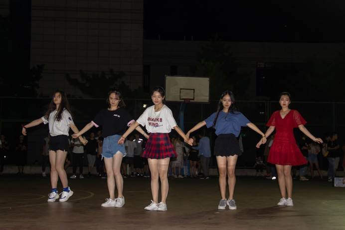 九弦音舞蹈队的学长和学姐们的舞蹈,舞进了每个学弟学妹的心里,跟随着舞蹈一起律动;九弦音礼仪队为学弟学妹带来一场精彩绝伦的球场SHOW的同时,Bbox队的学长也用他们的节拍带来了一场听觉盛宴;在BP街舞社的学长学姐们带来一场十分具有律动感的表演时,学弟学妹们都显示出了对街舞极大的喜爱与兴趣;由大艺团相声队带来的相声《论捧逗》基于原作的同时,也加上了自己的特色,笑料十足,令同学们捧腹不断;九弦音话剧队携手我们可爱帅气又幽默诙谐的教官,一同带来的话剧生动形象,引动了全场可爱新生们的笑声,现场一片欢声笑语。