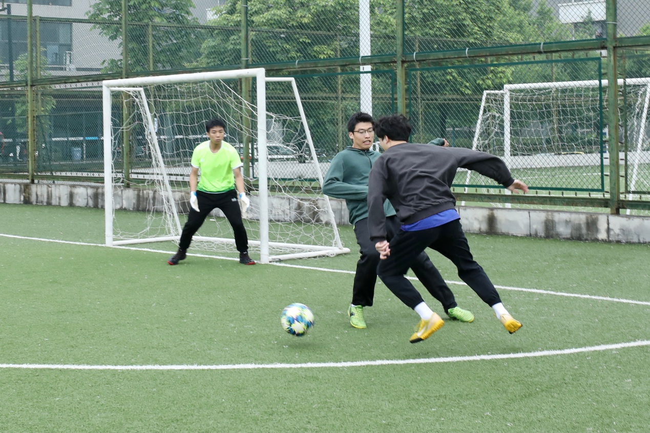 经历小组赛、淘汰赛6场比赛的洗礼,10011902班和10011904班联队(下称24联队)以及10051901班(下称ai队)会师决赛。决赛开场仅40秒,ai队牛远卓便利用边线球机会直接打门,对方门将解围失误将球折入自家大门,ai队1:0先拔头筹!比赛第8分钟,24联队利用对方滑倒失误,抢断形成二打一,李俊佑过人后冷静地传球给圣贤,后者调整角度抽射进球,将场上比分扳平至1:1!第11分钟,戏剧性一幕出现,24联队门将王翰墨大脚解围,ai队门将王嘉楠判断失误,皮球直冲进门!凭借这一记进球,24联队实现反超,1:2!比赛进行到第17分钟,白琦呈背身拿球横传给到牛远卓,后者跟上爆射破门,比分被重新扳平至2:2!