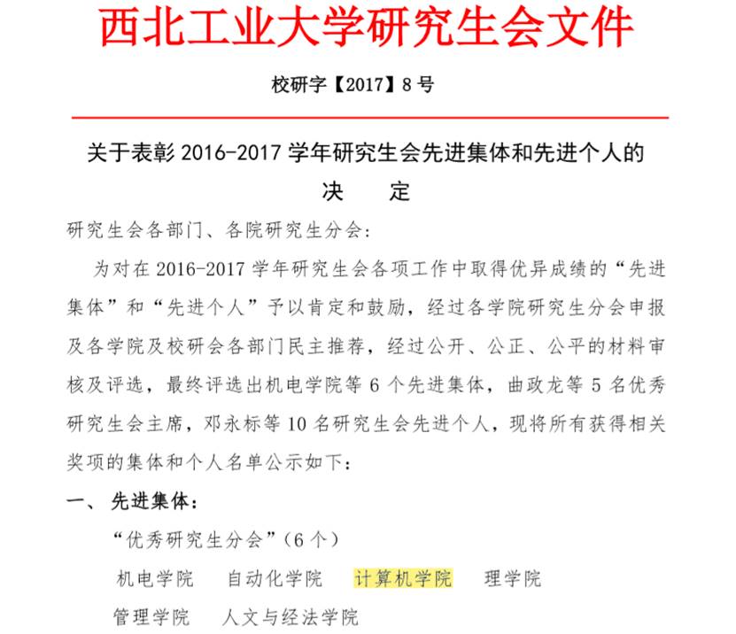 于2016-2017学年被评为“优秀研究生分会”