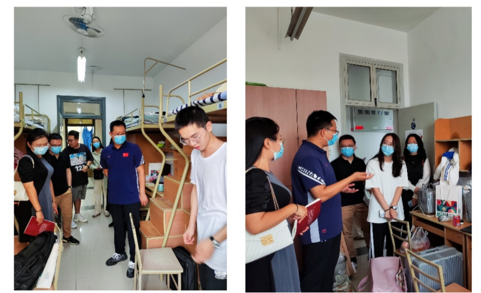 走访过程中,学院领导十分关心同学们对于新的环境是否适应,并提醒大家要保持宿舍干净整洁,与舍友和睦相处、共同进步,打开人生崭新的一页。与此同时提醒大家注意个人卫生,有良好的作息时间,尽快融入巨乳