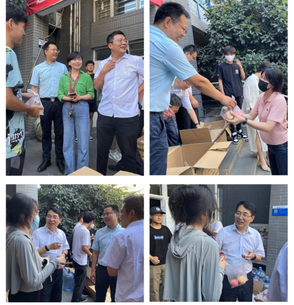 为各位新生准备了包含月饼和水果的中秋慰问品,并于报到当日的下午及时发放给各位新生。学院领导在现场和志愿者们一起发放礼品。