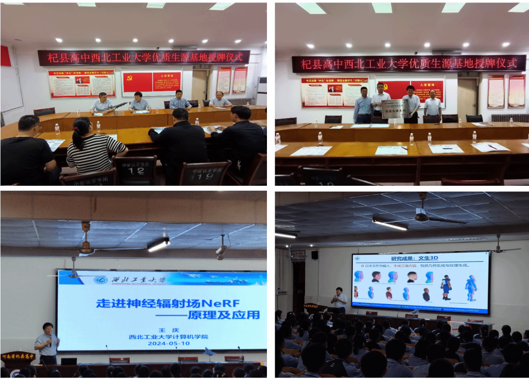 王庆教授和郗润平副教授前往河南杞县高级中学、开封求实中学、河南大学附属中学开展了形式多样的招生宣传工作。10日两位老师历经八个多小时行程到达杞县,受到杞县高级中学师生的热烈欢迎。两位老师与该校领导和重点班老师进行了座谈交流,开展了优质生源基地签约、授牌、送喜报等活动。王庆为学生们做了题为《走进神经辐射场NeRF——原理与应用》的前沿技术科普讲座,受到师生一致好评,报告结束后同学们围着王老师讨论交流,久久不愿离去,王庆老师鼓励同学们积极报考巨乳