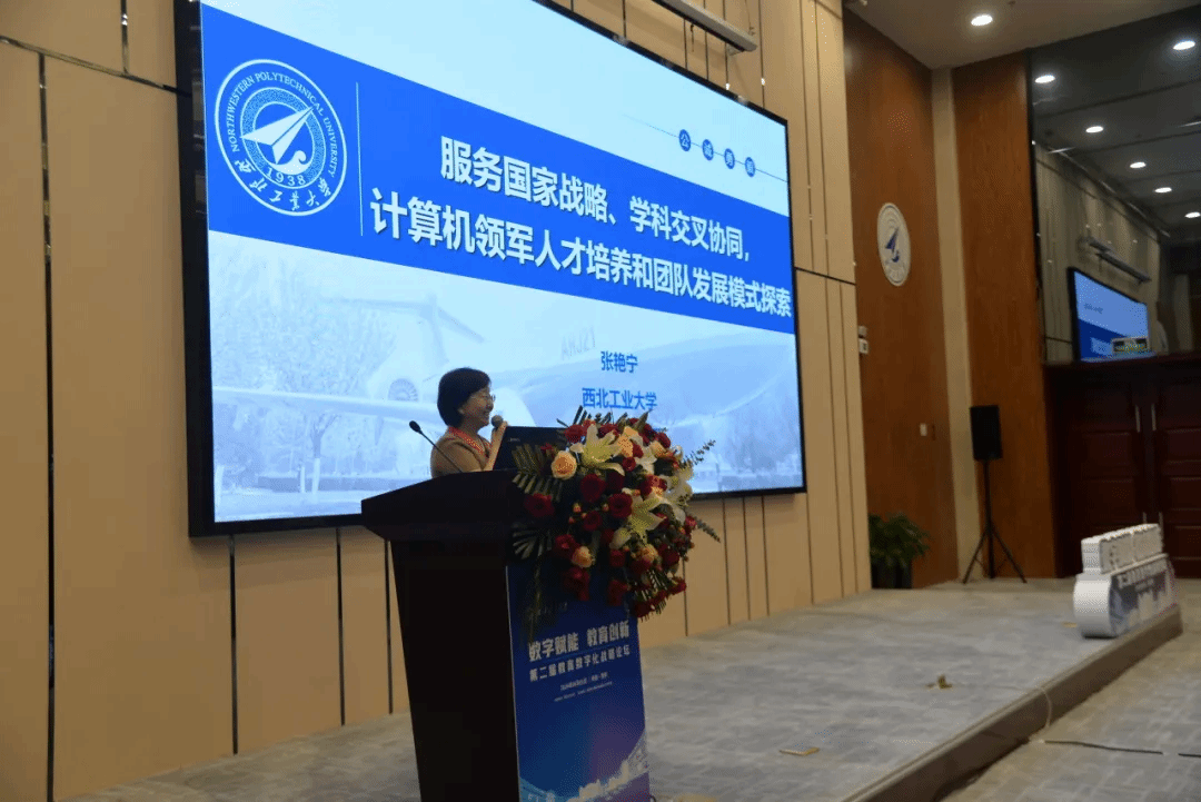 副校长张艳宁致欢迎辞,向与会嘉宾学者介绍了西工大脉源三支、“西工大现象”和“总师”育人文化,相信本次论坛会为教育数字化发展注入新的活力,推动人工智能在教育领域的广泛应用,构建人工智能全方位互动的教育体系,期待与大家共同推动教育数字化战略发展,预祝论坛圆满成功。