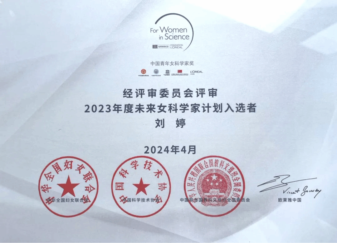 刘婷副教授入选第八届未来女科学家计划(全国共10人)。2023年,刘思聪副教授入选第七届未来女科学家计划,学院青年教师连续两届入选该计划。