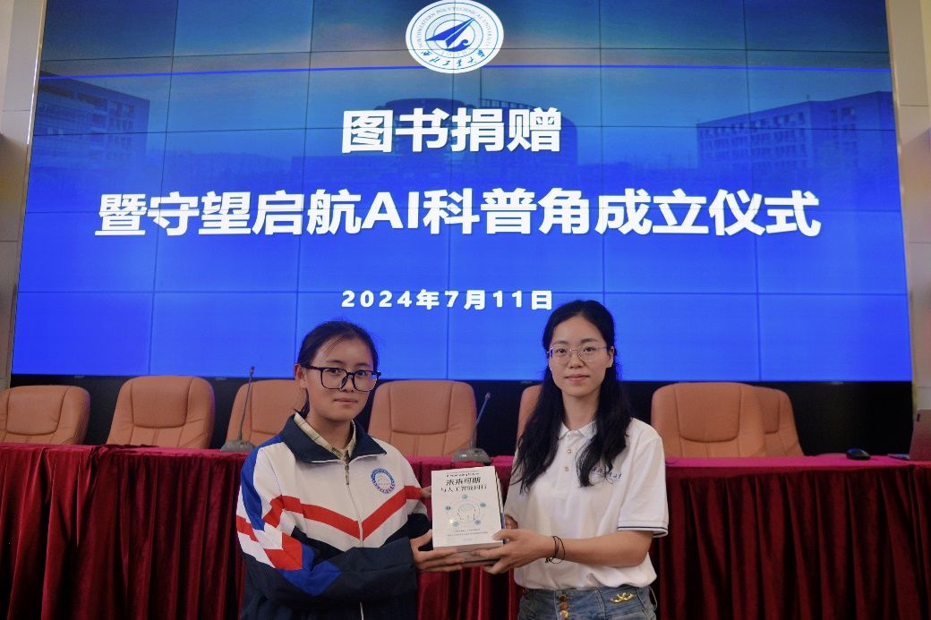 宣讲结束后,进行了图书捐赠暨“守望启航AI科普角”成立仪式,实践队为西藏拉萨实验中学捐赠了人工智能科普类书籍。同时,举行了巨乳