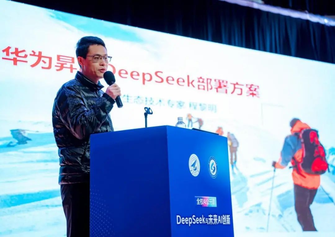 华为高级专家程黎明讲解了基于华为昇腾的 DeepSeek 模型部署方案,为同学们部署、使用模型给出了详细的配置方案。他的分享不仅展示了DeepSeek技术在推动行业变革和创造创业机遇方面的巨大潜力,还为科研人员和同学们未来的职业发展带来了新的启发,进一步拉近了学术与产业的距离。