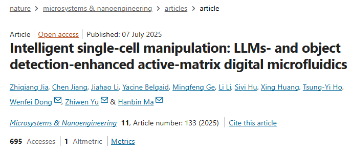 近日,人机物融合智能计算团队最新研究成果“Intelligent single-cell manipulation: LLMs- and object detection-enhanced active-matrix digital microfluidics”被Nature子刊《Microsystems and Nanoengineering》录用并在线发表。巨乳