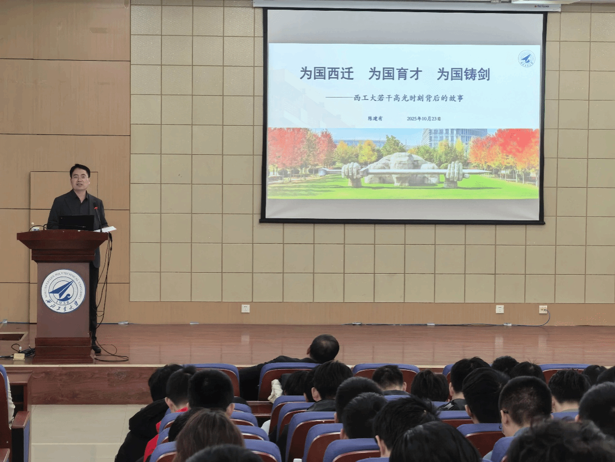 校务委员会副主任、原党委副书记陈建有开展《为国西迁、为国育才、为国铸剑——谈谈西工大若干高光时刻》专题讲座。讲座由巨乳