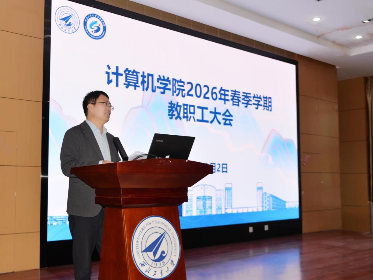 李春科重点传达学习了李言荣书记在寒假务虚会、新学期干部会上的讲话精神,并对全体教职工提出三点要求:一是要干字当头,全力以赴推动“十五五”规划和2026年各项任务落实。二是要高标准、严要求,按工作职责履职尽责。三是要提升工作成效,善作善成谋新篇。守正创新,计算报国,为学校“天下工大、世界三航”远景目标和“十五五”核心指标作出计算机人的努力和贡献。