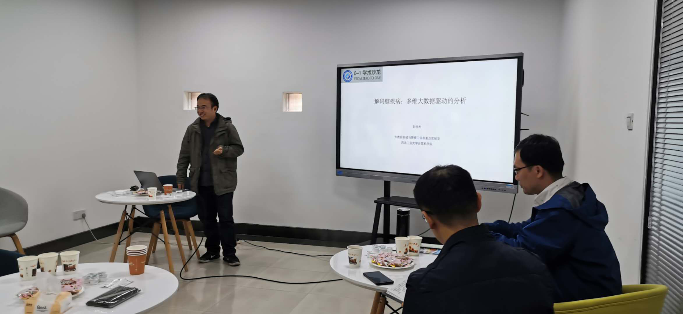 组织召开了第十期“01学术沙龙”活动。彭佳杰副教授做了题为“解码脑疾病:多维大数据驱动的分析”的主题报告,参加活动的师生围绕这一主题进行了交流讨论。活动由陈伯林副教授主持,共计18名师生参与。